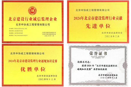 此次会议还举行了颁奖仪式,公司以求真务实的态度和行胜于言的努力,喜获“北京市建设监理行业通规知识竞赛优胜单位”荣誉奖项,持续荣获“北京市建设监理行业贡献先进单位”和“北京建设行业诚信监理企业”荣誉称号,公司总工程师边保乐荣获“北京市建设监理行业通规知识竞赛高管组优胜奖”。